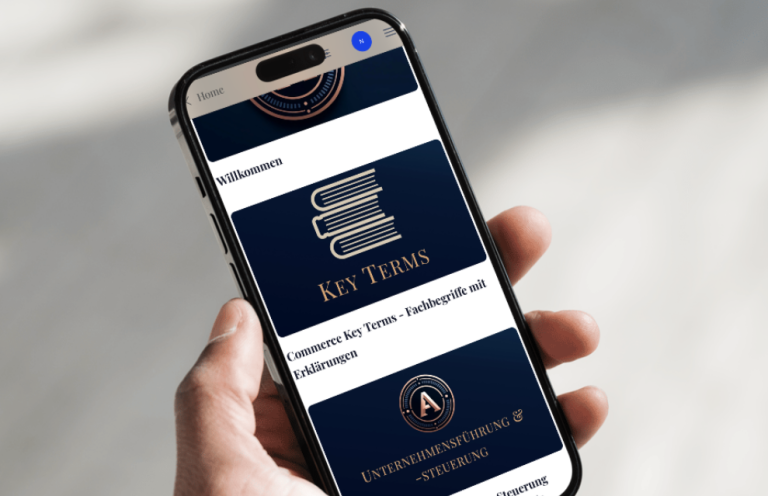 Außerdem erhältst du die Key-Commerce-Terms.In einer Zusammenfassung sind die wichtigsten Fachbegriffe, die in der Prüfung oder in den Skripten vorkommen erklärt.